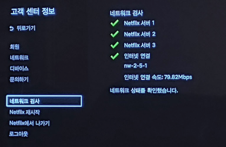 아래화면은 "상세정보보기" 에서 확인한 네트워크 상태 등입니다. 여기에서는 넷플릭스 연결에 문제가 없는게 확인이 되네요.