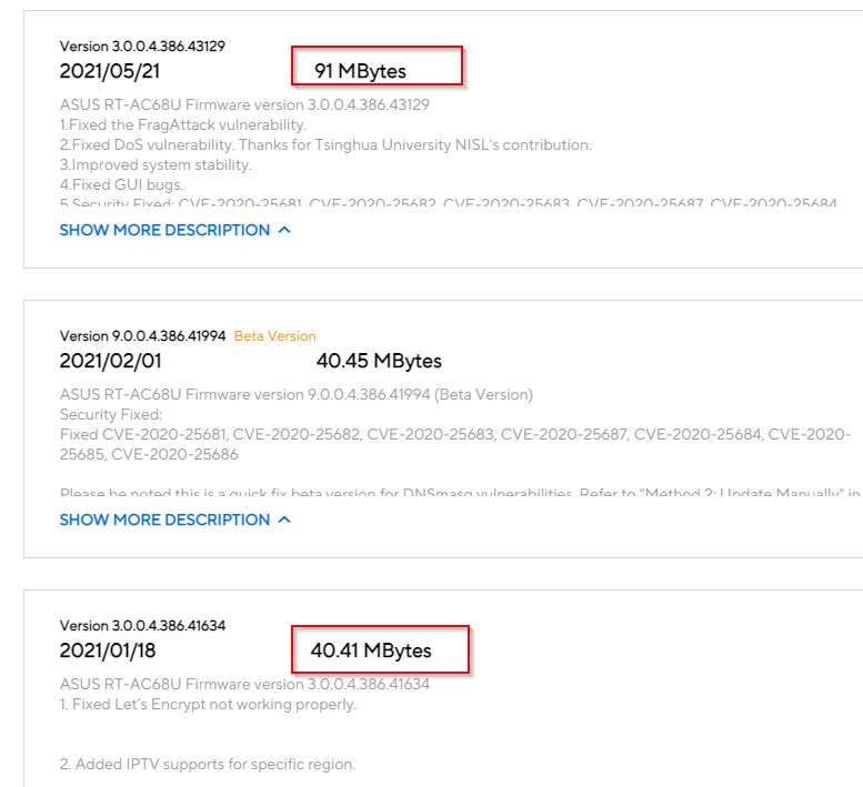 2021년 5월 펌웨어가 갑자기 사이즈가 91M로 바뀌어있었다. 이때 뭔가 큰변화가 있었던 모양이다.